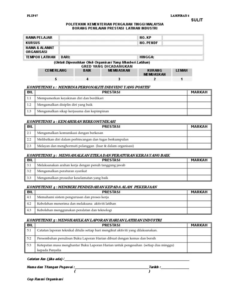 Contoh Borang Penilaian Pekerja / Contoh Komen Penilaian Prestasi Kerja